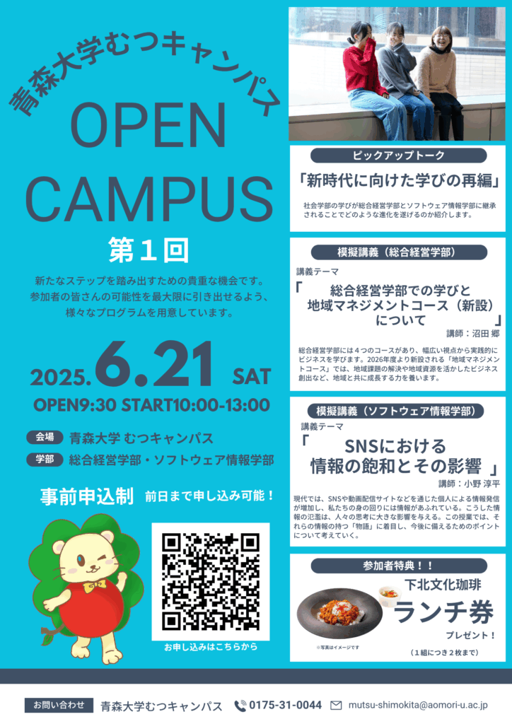 未来の自分に出会える1日。ぜひこの機会に、青森大学むつキャンパスの魅力を体感してください!