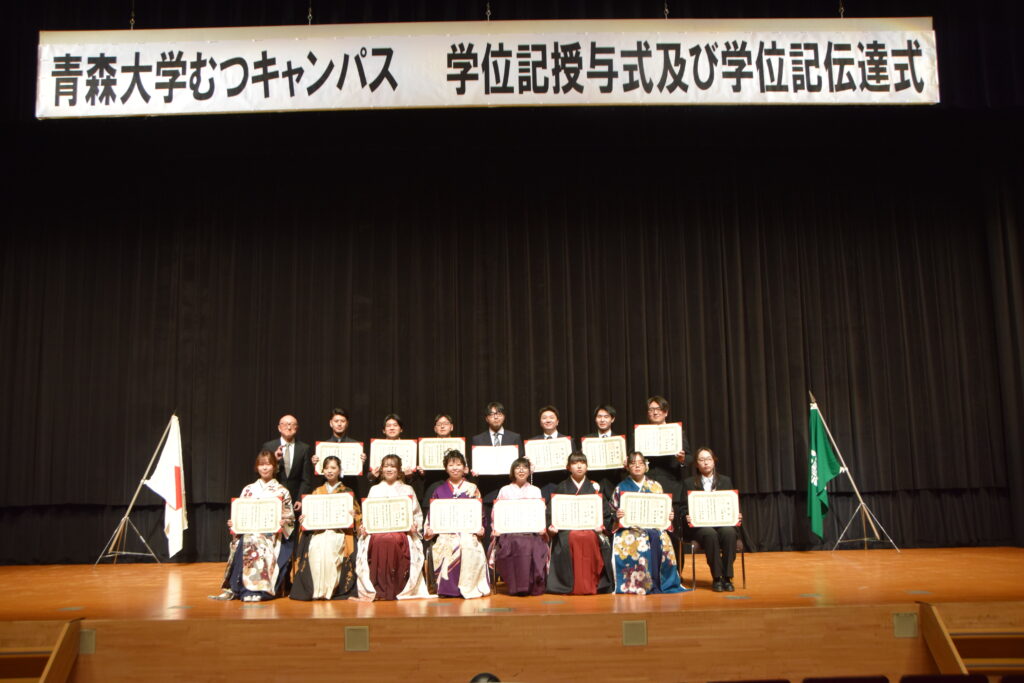 学位記伝達式ではむつキャンパスの15名の卒業生が学位記を受け取りました。