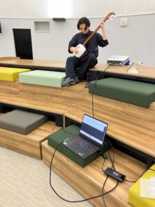 12月15日(日)に実施したロケハンでは、現地でのプロジェクタのキャリブレーションやデモ映像の確認、三味線の音響チェックなどを実施しました。