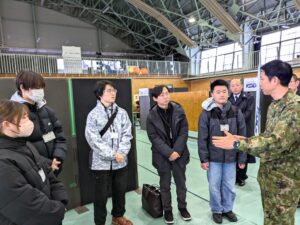 自衛隊駐屯地で開催された企業展示会にソフトウェア情報学部の学生が参加しました。