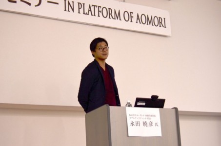 一般や大学生ら約40名が参加し、講師 中俣 博之(ナカマタ ヒロユキ)氏、永田 暁彦(ナガタ アキヒコ)氏の話に耳を傾けました。