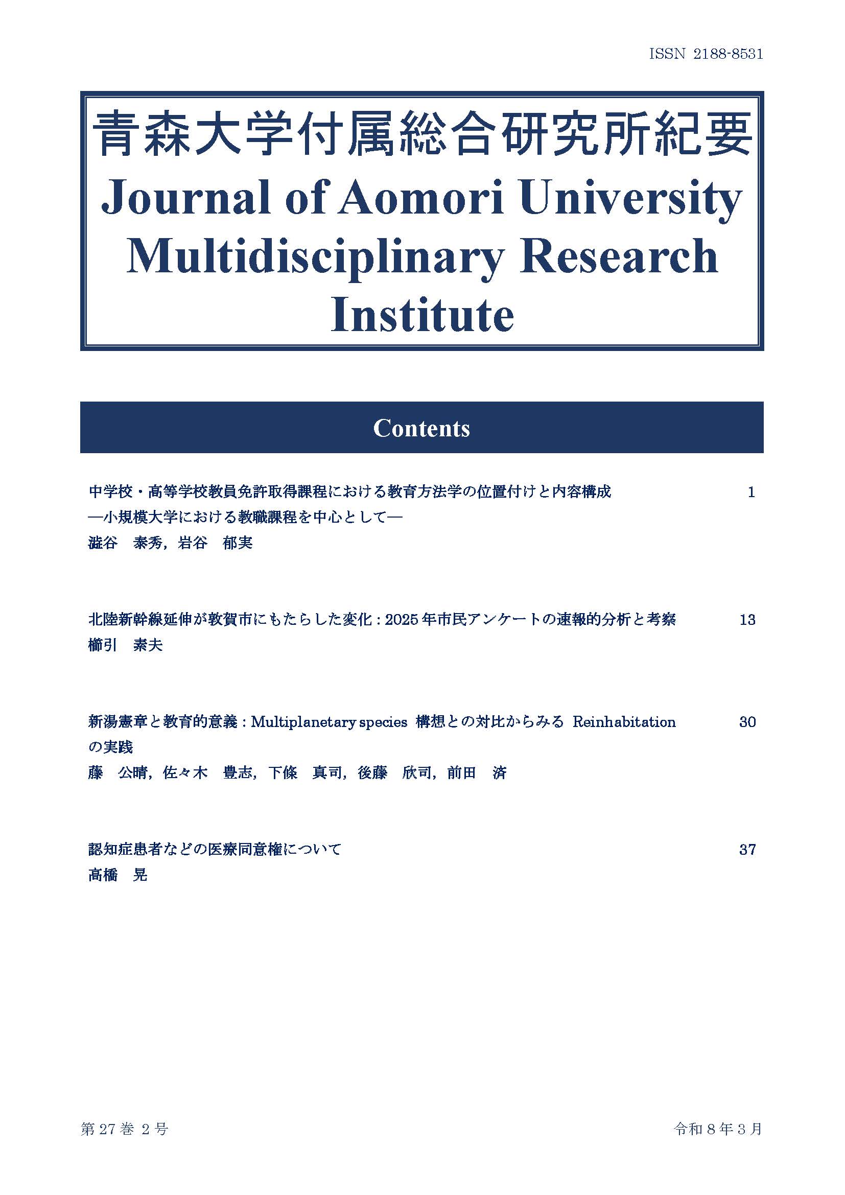 青森大学付属総合研究所 紀要 第27巻2号