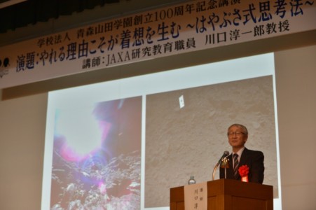 記念講演では、川口淳一郎氏(※)による講演「やれる理由こそが着想を生む ~はやぶさ式思考法~」が行われました。次の100年に向けて挑戦を続ける本学園にとって、大変刺激的で心揺さぶる内容でした。