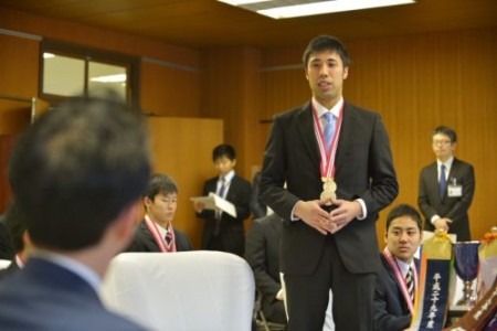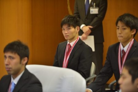 11月22日、本学男子新体操部が小野寺青森市長を表敬訪問しました。