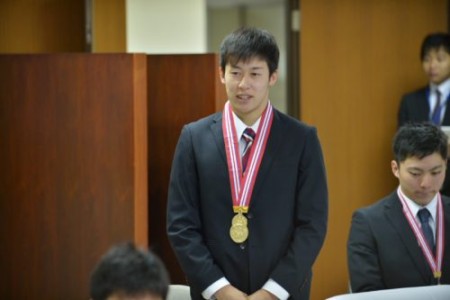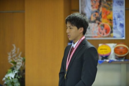 はじめに中田吉光監督よりメンバー紹介並びに両大会の戦績等報告があり、続いて木村雅大学長補佐・事務局長が挨拶を述べました。