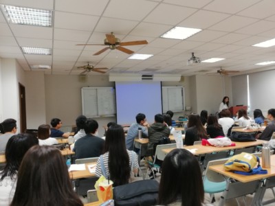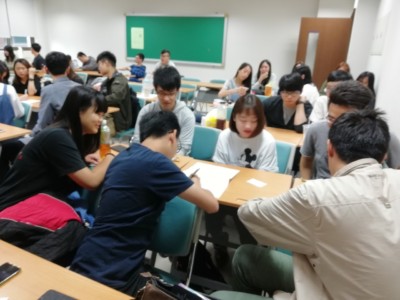 交流の一つとして、義守大学の学生への青森大学紹介が行われました。語学研修で習得した中国語を活用する絶好の機会。本学の5名の学生たちの腕前は、いかがなものだったのでしょうか?