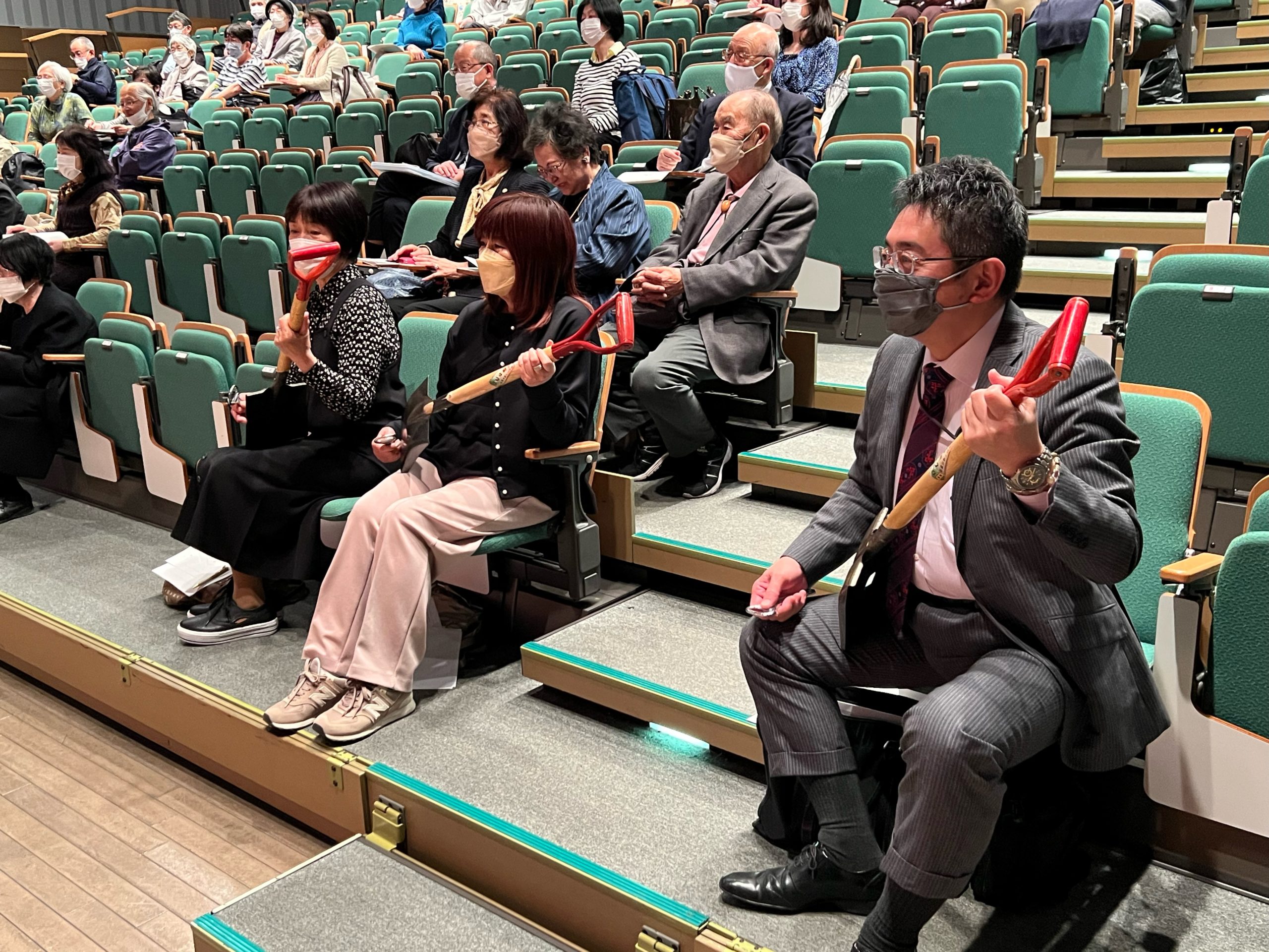 『津軽の響き~津軽三味線&ちがる三味線の共演~』と題し、山上氏の津軽三味線と吉崎氏のスコップが奏でる異色のコラボで民謡から童謡・ポップスまで幅広く演奏し、会場は手拍子と掛け声で大いに盛り上がりました。山上氏オリジナルの尺八による演奏『縄文』には鳥肌が立ちました。(思わず目頭を押さえる受講者も)