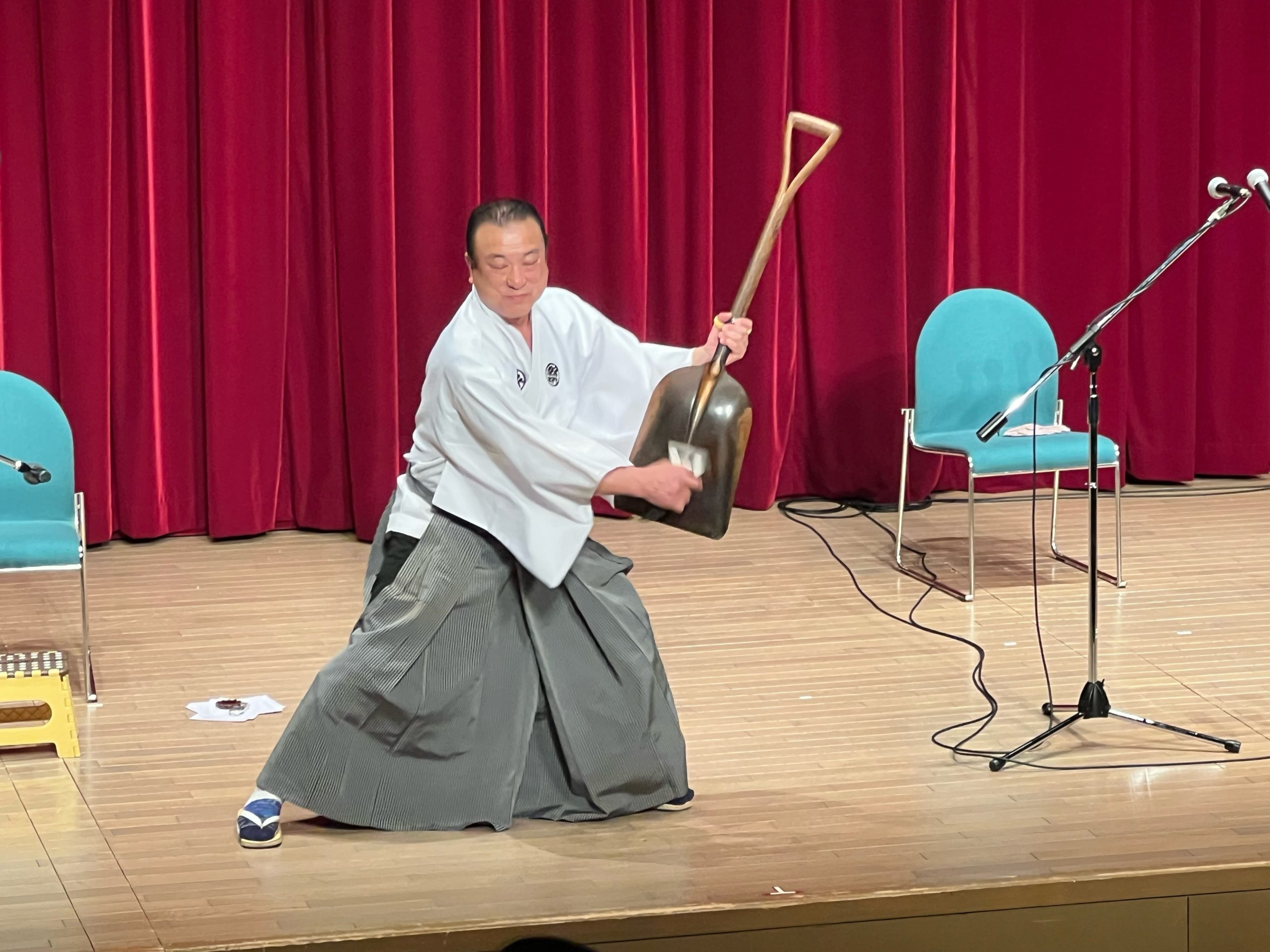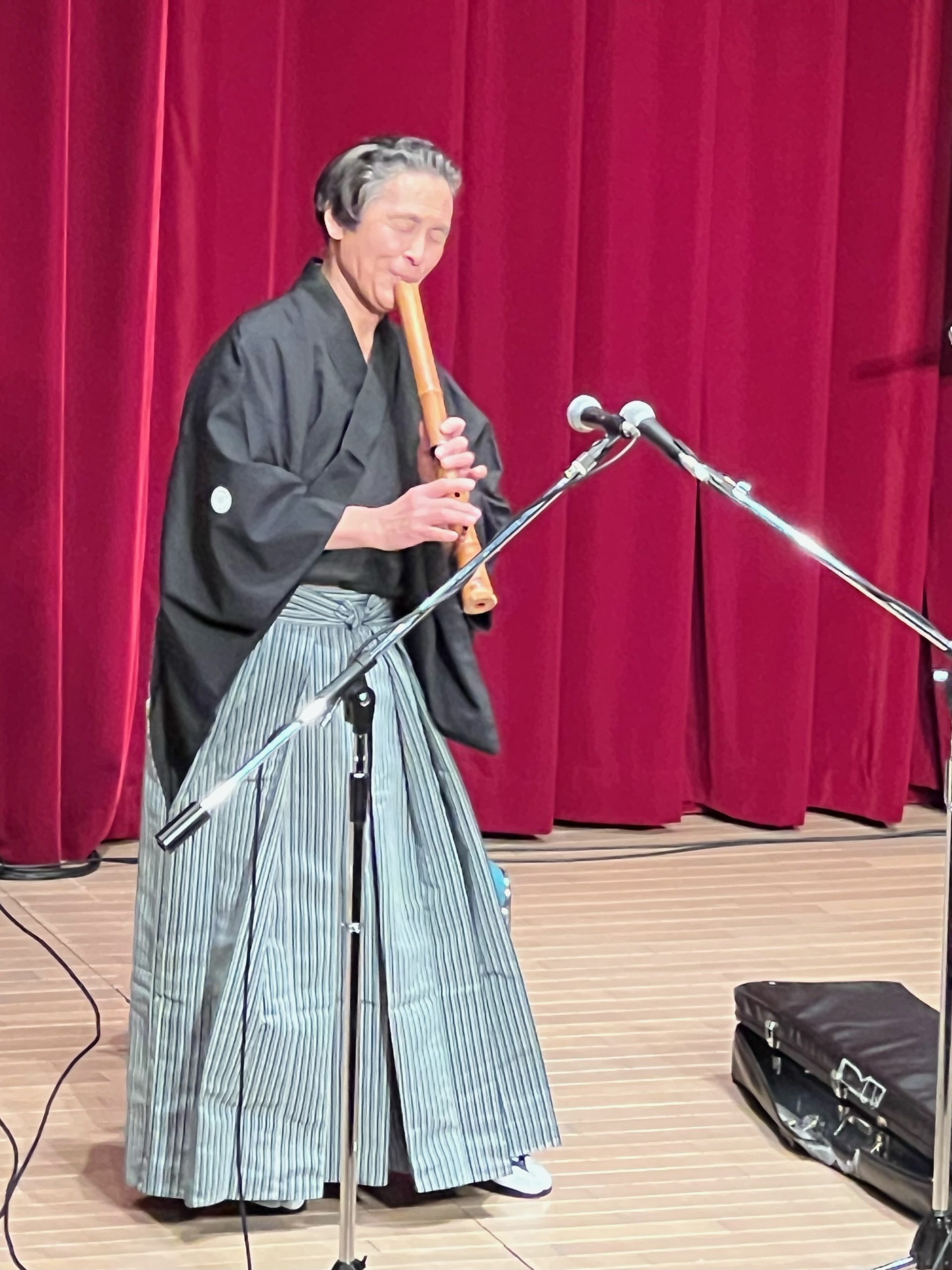 『津軽の響き~津軽三味線&ちがる三味線の共演~』と題し、山上氏の津軽三味線と吉崎氏のスコップが奏でる異色のコラボで民謡から童謡・ポップスまで幅広く演奏し、会場は手拍子と掛け声で大いに盛り上がりました。山上氏オリジナルの尺八による演奏『縄文』には鳥肌が立ちました。(思わず目頭を押さえる受講者も)