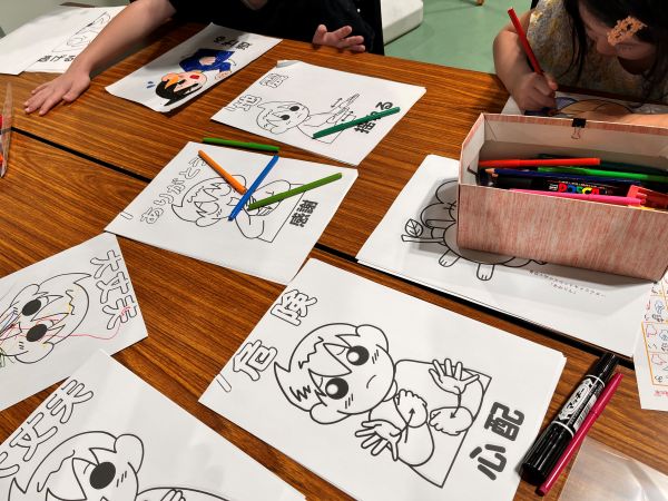 本学のブースには、2日間で延べ300人以上にご来場いただき、指文字のクイズや防災時に必要な手話を表したぬり絵、神経衰弱をしながら学んでいただき、改めて防災の大切さと、緊急時の手話の必要性や関心を持ってもらうことができました。また、当日は防災に関する研究をしていた学生の資料も展示し、たくさんの方々に見ていただくことができました。