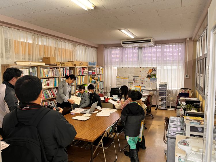 「大学にも保健室がある!」との発見や、図書館ではたくさんの本に囲まれた部屋を回り、絵本があるという紹介もありました。