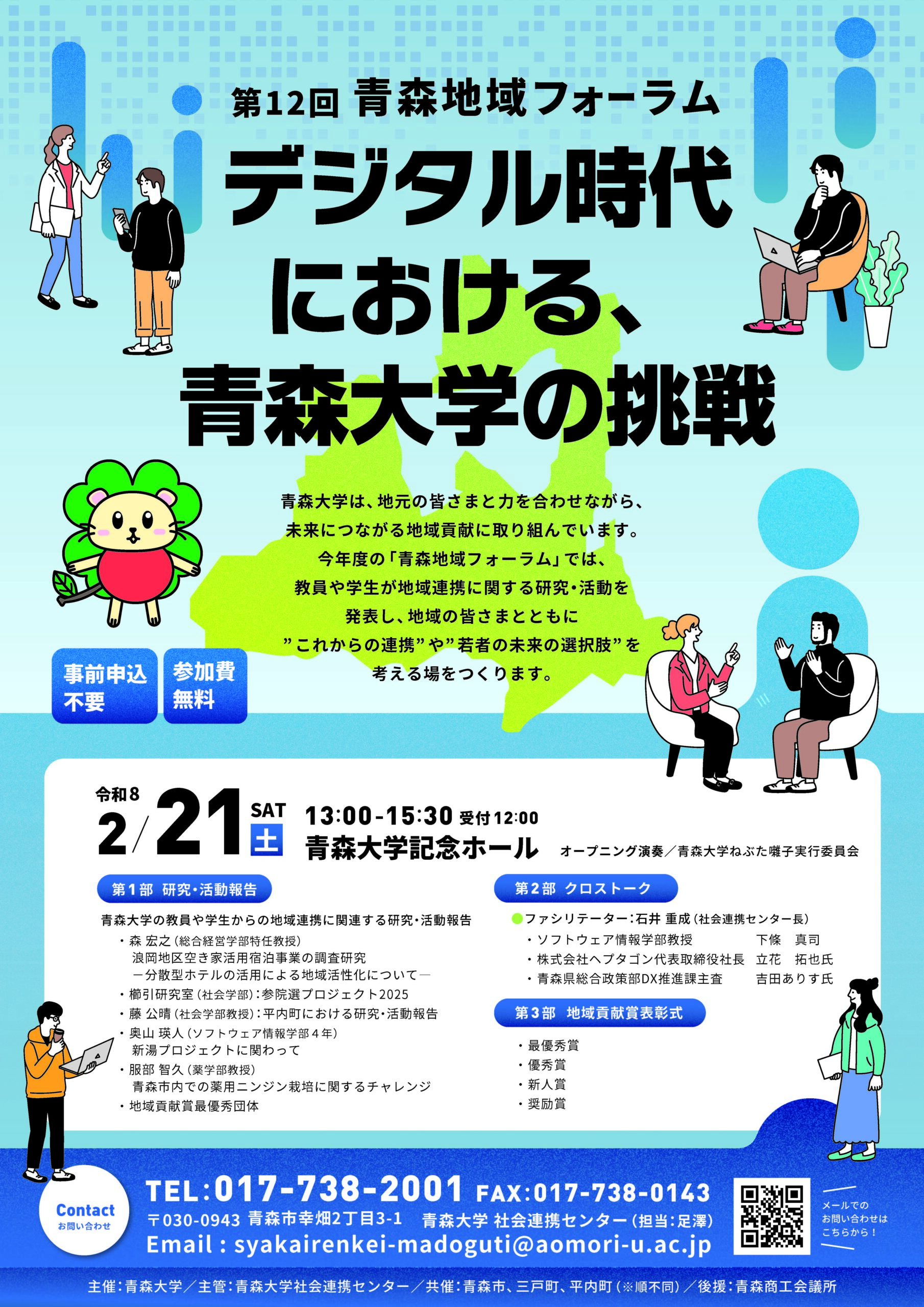 青森大学では、2026年2月21日(土)に「デジタル時代における、青森大学の挑戦」と題して、フォーラムを開催いたします。