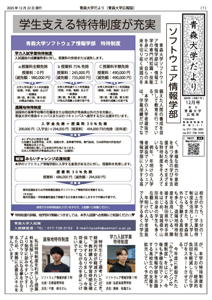 より多くの方に本学の取り組みや各所で活躍している教員・学生を知っていただくため、広報紙(不定期連載)を発行しています。
